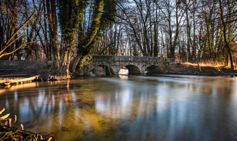 Un premier pont de bois se trouvait là, permettant de relier Gex au port de Coppet. Son existence est attestée dès 1564.