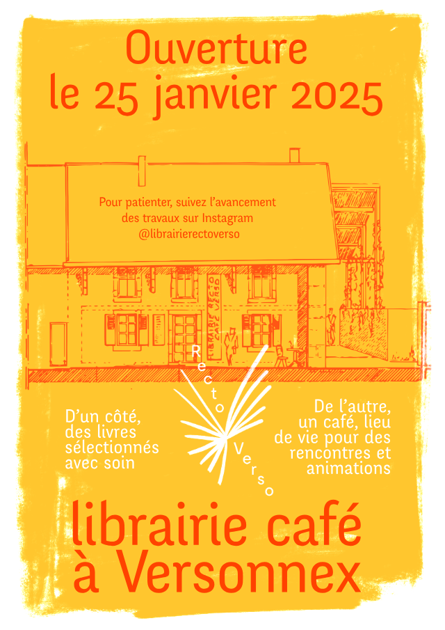 Nous sommes heureux de vous informer de l’ouverture d’une librairie-café sur la commune de Versonnex dès le samedi 25 janvier 2025. La librairie est située au 208 route de Divonne à Versonnex ; l’entrée se fait via l’impasse du Pré Bernard.
