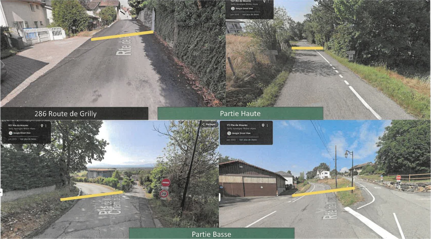La route entre Grilly et le hameau de Mourex reste interdite à tout véhicule dans les deux sens. La route de Vesancy est et reste en sens unique dans la descente à partir de la ferme jusqu’à l’intersection avec la D984C (Gex-Divonne).