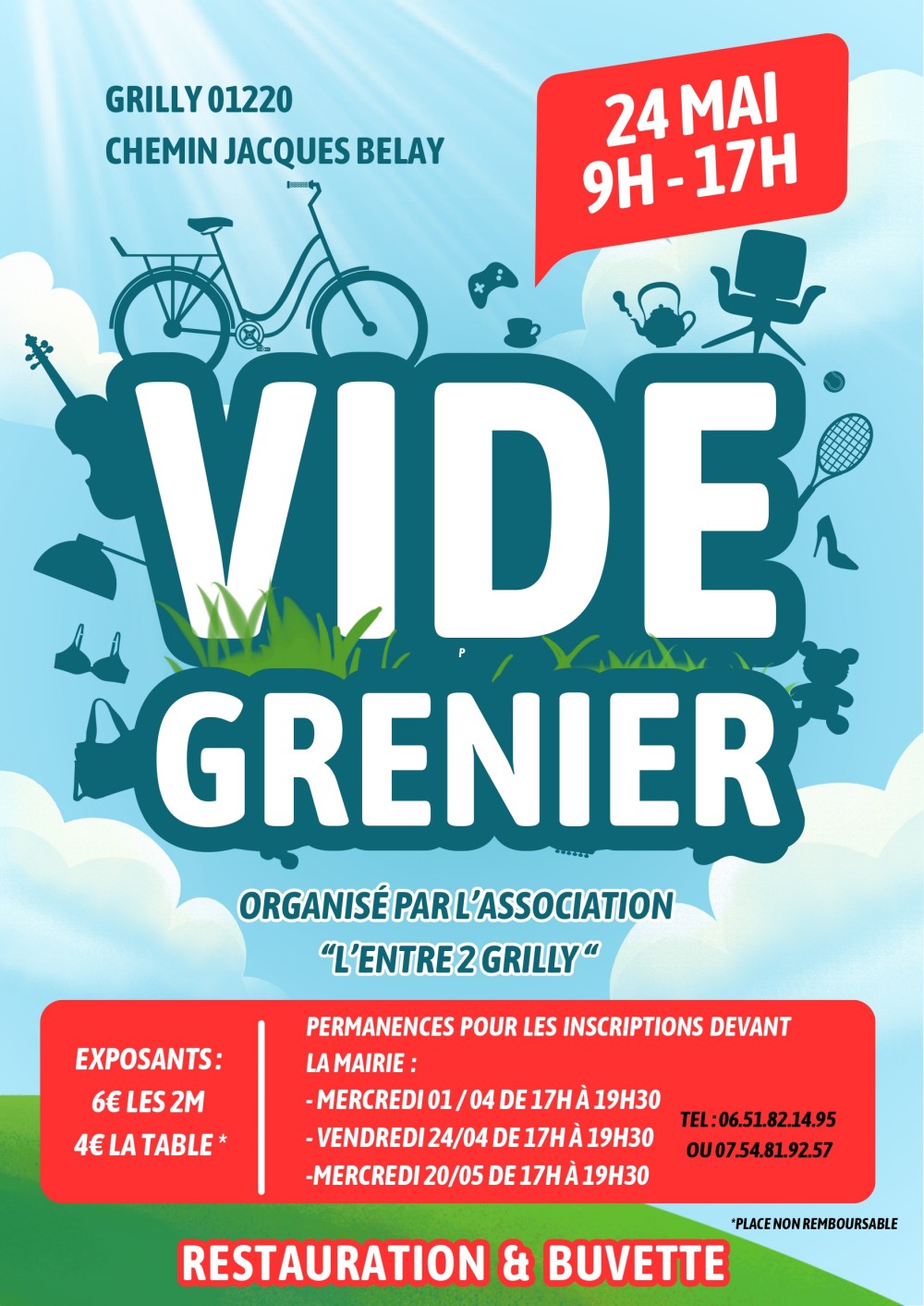 Vous avez du tri à faire ou vous voulez faire de bonne affaire ? Ça tombe bien, l’Entre2Grilly revient en ce début de saison avec son vide grenier qui aura lieu :